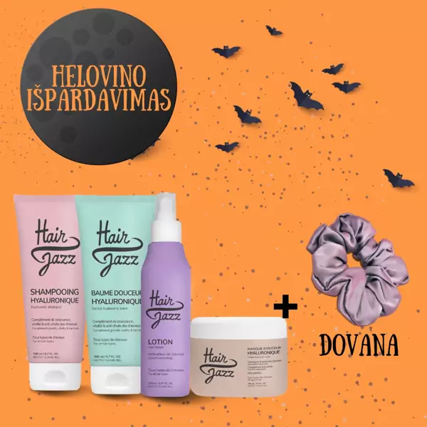 HELOVINO IŠPARDAVIMAS! HAIR JAZZ rinkinys plaukų augimui skatinti bei giliam maitinimui + DOVANA (šilkinė plaukų gumytė)!
