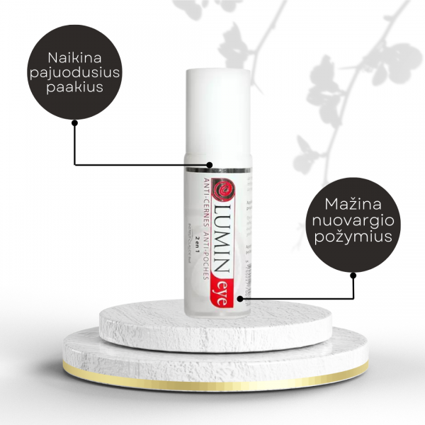LUMIN EYE (20 ml): Naudokite ryte ir vakare po veido prausiklio, toniko, naktinio kremo. Sukamaisiais judesiais, švelniai masažuojant su specialiu priemonės aplikatoriumi paskirsykite priemonę į paakių sritį.