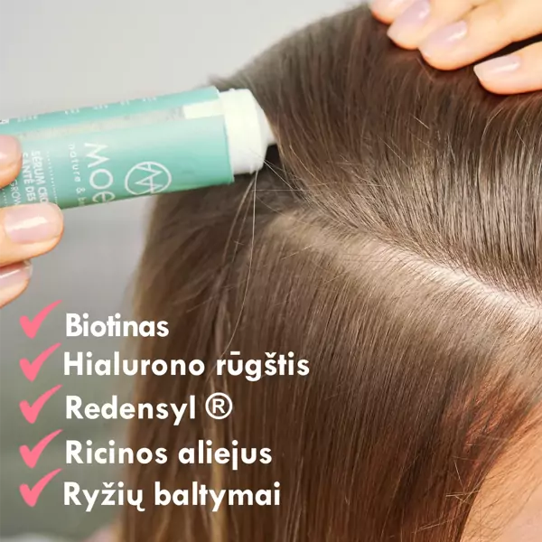 MOEA Naktinis plaukų augimo serumas (30 ml): Tepkite ant sausų plaukų prieš miegą. Ryte produkto nuplauti nereikia. Patekus į akis, gerai išskalauti.
