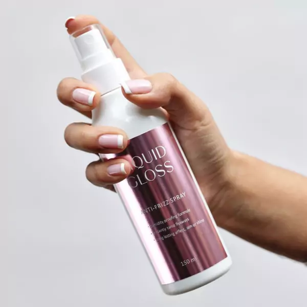 - Padalinkite plaukus į sruogas. Gausiai ir tolygiai purkškite ant drėgnų (ne šlapių) plaukų. Nenaudokite kitų formavimo priemonių, kol plaukai yra drėgni. Po plaukų džiovinimo naudojant „Liquid Gloss” galite naudoti formavimo priemones.